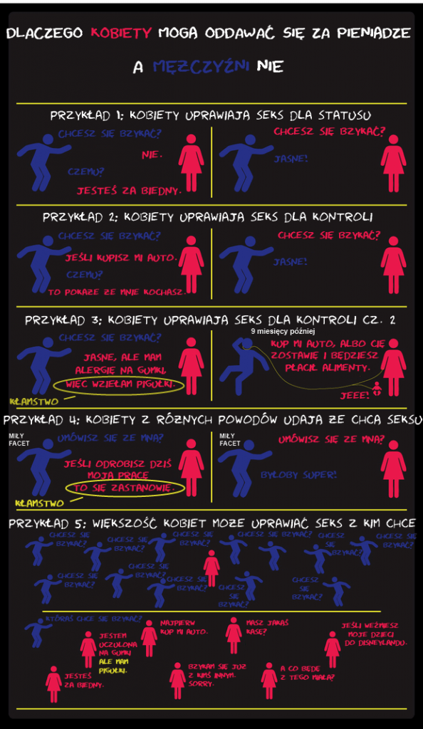 Zapytajcie kobiet czy to prawda, że „władza dodaje seksu”? Ogromna większość odpowie, że TAK! I to jest właśnie ten nieuświadomiony wpływ hypergamii na kobiety. Kobietę ciągnie do tego samca alfa, bo on posiadając władzę (i pieniądze) mógłby potencjalnie zabezpieczyć ją i jej dziecko na przyszłość. Zrobi wszystko, żeby przyciągnąć go do siebie, a przynajmniej zwrócić na siebie uwagę. Odda mu się łatwiej niż temu obok samcowi beta, któremu brakuje tych wszystkich przyciągających cech ’alfa’. A jeżeli już mu się odda (może nawet wielokrotnie), a on ją zignoruje – jej zemsta może być straszna: przecież może rozgłosić, że była molestowana albo wręcz gwałcona.